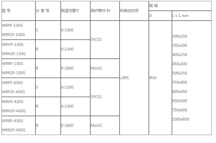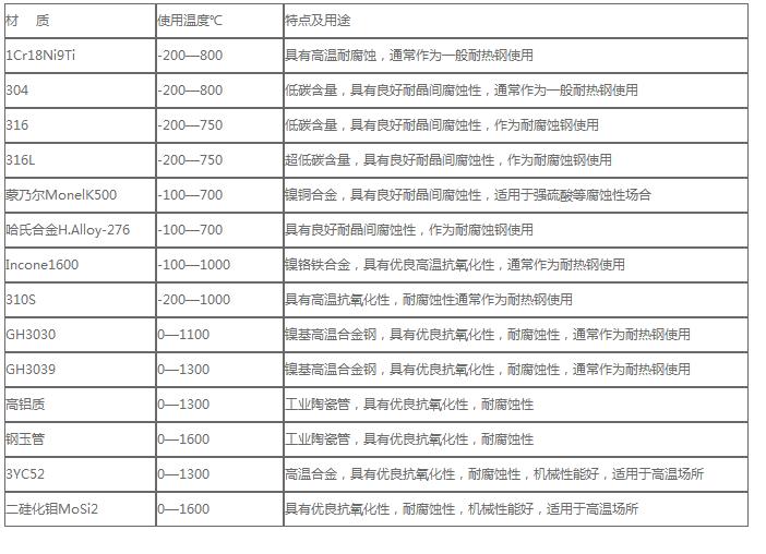 1.注明耐腐熱電偶型號、分度號、使用溫度范圍。