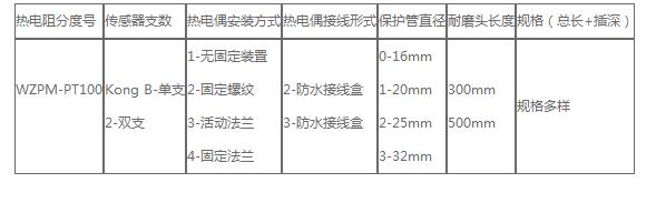 耐磨熱電阻型號(hào)
