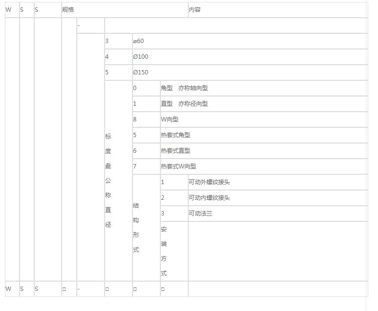 溫度計指示部分:(按溫度計標(biāo)度盤的外徑表示)分φ60、φ100、φ150mm.