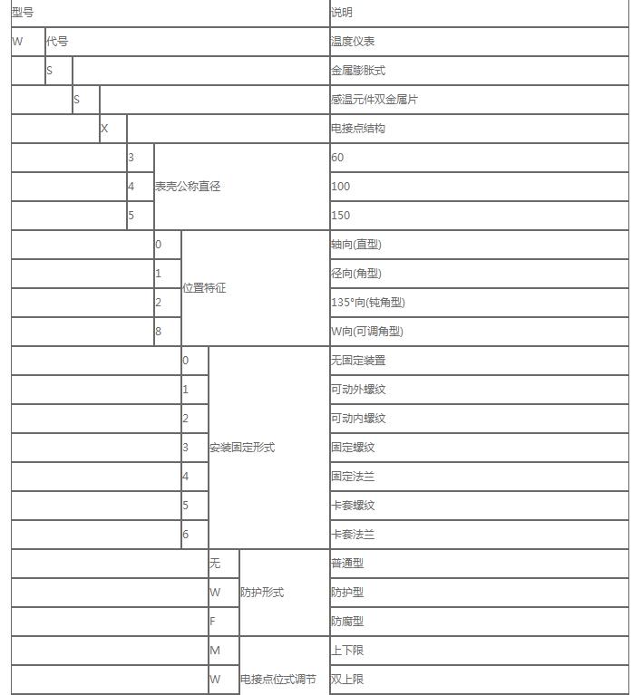 雙金屬溫度計主要技術參數
