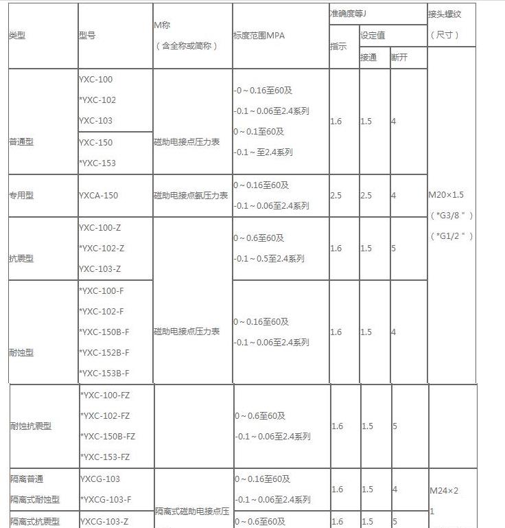 磁助電接點壓力表廣泛應用于石油、化工、冶金、電站等工業部門或機電設備配套中測量無爆炸危險的各種流體介質的壓力。通常、儀表經與相應的電氣器件(如繼電器及接觸器等)配套用,即可對被測(控)壓力系統實現自動、控制和發言(報警)的目的。為了適應被測對象的各異和需求,本系統儀表在原有普通型和專業型的基礎上,有相繼研制了抗振型、耐蝕型、耐蝕抗震型以及帶有隔離裝置等多種類型共10多種型號的產品。